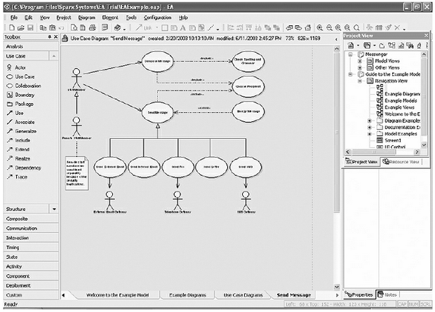 Enterprise Architect существует в вариантах для Windows и Linux и является неплохим средством для UML-моделирования, с возможностью многопользовательской работы и дружественным интерфейсом. Вы также найдете в EA множество функций, которые обычно распределены между несколькими приложениями (ничем не напоминает наши слова о Borland Together?), включая отличные возможности по генерации документации, поддержку плагинов, генерацию XSD-схем, HTML и поддержку для таких языков программирования, как C++, Java, PHP, Visual Basic, VB.Net, Delphi или C#.