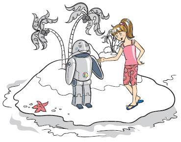- "Ну, а теперь, Алджи, слушай меня... В окружающем нас мире непрерывно происходят события. Я проголодалась — это событие. Кокосы созревают — и это событие. Иногда мы сами можем вызывать события, чтобы выполнить некоторое действие. У меня есть отличная мысль: давай вызовем событие "беспокойство слона", которое заставит его помочь нам выполнить действие "добывание кокосов".