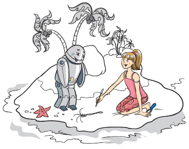 Он смотрит на вас озадаченно. Затем с таким же видом переводит взгляд на изображение кокосовой пальмы. Потом опять на вас. И снова на рисунок. Бесполезно — он не понимает! Осознав свою ошибку, вы хватаетесь за голову и растерянно показываете на настоящую пальму. Но Алджи по-прежнему не может понять. Оказывается, он понимает только рисунки. Ага! Теперь-то становится ясно, что, хотя Алджи и может использовать ваш язык, он фактически НЕ понимает реальных вещей, о которых вы говорите.
