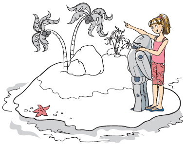 - "Сейчас я хотела бы рассказать тебе об объектах, существующих на этом острове. Прежде всего, если ты еще не заметил, меня очень интересует эта кокосовая пальма (между прочим, она входит в класс, называемый "растениями"). Мне интересен и вон тот слон. Ух, ты! Странно, что я не заметила его раньше". (Вы указываете на каждый объект, о котором говорите.)