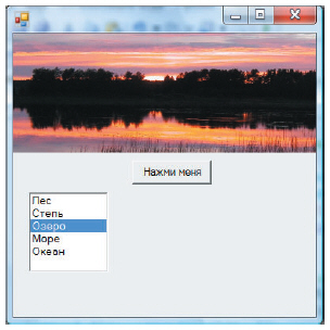 Обратите внимание: кроме System.Windows.Forms в этом примере упоминается пространство имен System.Drawing. Дело в том, что мы используем элемент управления PictureBox, а для работы с изображениями требуются классы Drawing.