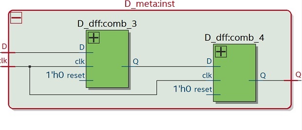 Для создания схемы преодоления метастабильности с применением нескольких триггеров создадим базовый D-триггер (листинг 3.4) и файл верхнего уровня, приведенный в листинге 3.6