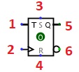1 - синхронный T вход; 2 - вход синхронизации (С); 3 - асинхронный вход S; 4 - асинхронный вход R; 5 - прямой выход Q; 6 - инверсный выход Q. |