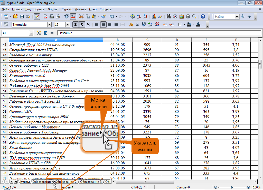 Перемещение и копирование листа в пределах одного документа обычно производят перетаскиванием ярлыка листа вдоль линии ярлыков при нажатой левой кнопке мыши. Для копирования следует держать нажатой клавишу Ctrl. При этом будет отображаться метка вставки в виде двух черных треугольников, направленных навстречу друг другу ( рис. 8.5). При доведении метки вставки до нужной позиции в документе следует отпустить левую кнопку мыши.