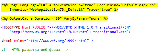 Определение директивы OutputCache в странице выглядит следующим образом.