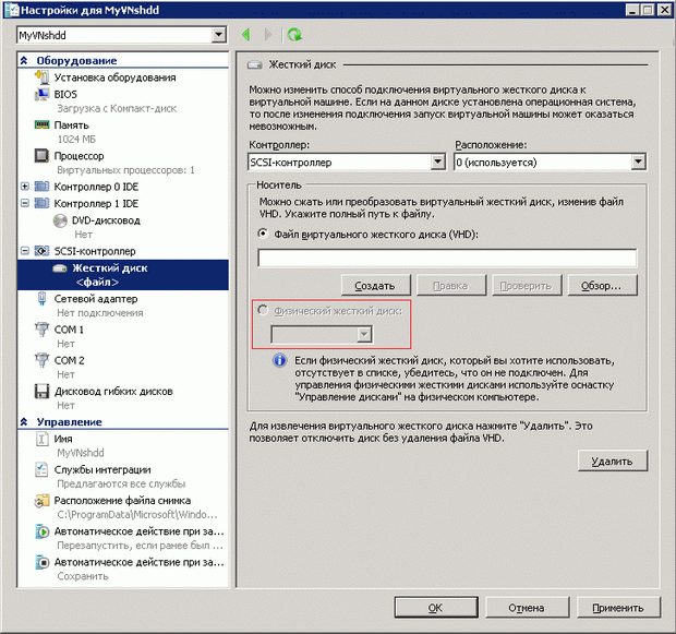 Создание виртуальной машины с использованием виртуального жесткого диска