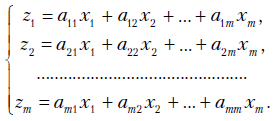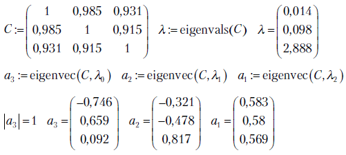 Составим корреляционную матрицу С и определим ее собственные векторы и собственные значения, используя, например, пакет МАТКАД.