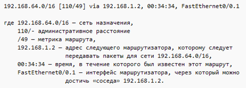 Выбор маршрута маршрутизатор осуществляет на основе таблицы маршрутизации. Таблицы маршрутизации содержат информацию о сетях, и интерфейсов, через которые осуществляется подключение непосредственно, а также содержатся сведения о маршрутах или путях, по которым маршрутизатор связывается с удаленными сетями, не подключенными к нему напрямую. Эти маршруты могут назначаться администратором статически или определяться динамически при помощи программного протокола маршрутизации. Таблица маршрутизации содержит набор правил – записей, состоящих из определенных полей. Каждое правило содержит следующие основные поля-компоненты: