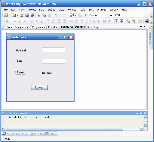 - Создайте проекта с именем, например WebProxy (тип проекта Windows Forms Application).