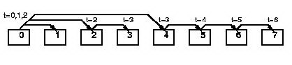Increasing-2-ring (modified): Данные пересылаются по схеме: 0 -> 1 ; 0->2 ; 2->3 ( 0->4 ); 2->3 ( 0->4 ) и так далее: